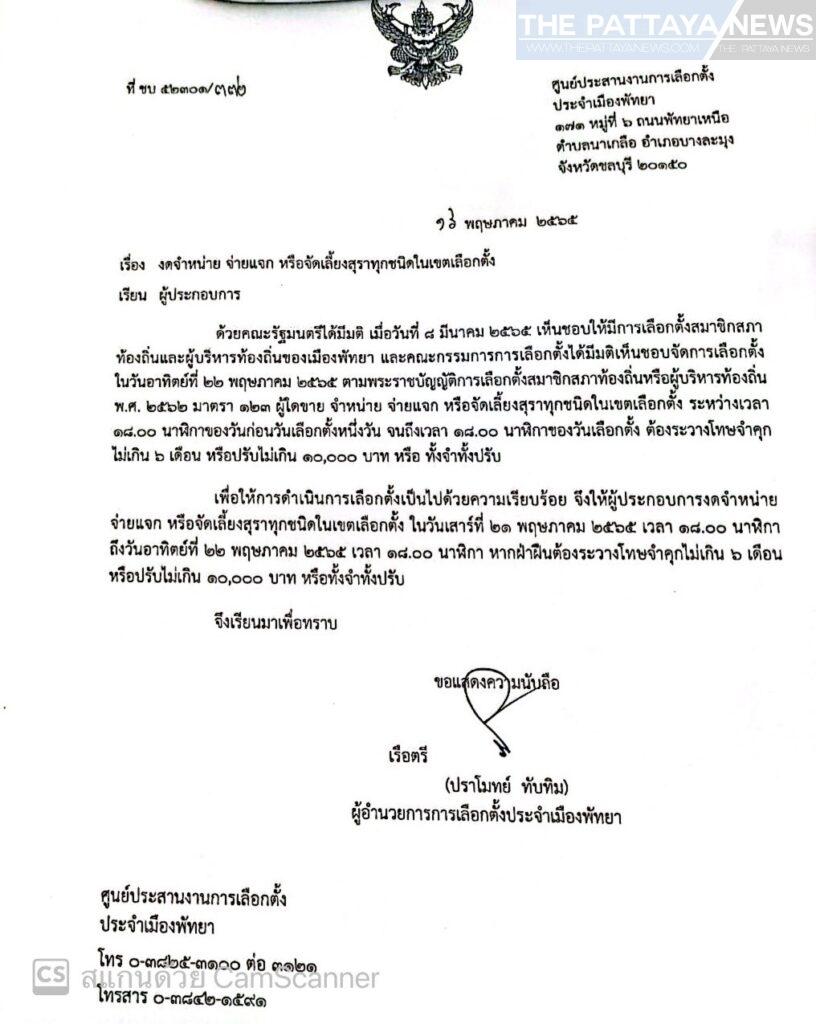 The Pattaya News notes the ban on sales only applies to areas where the Pattaya Mayor has jurisdiction, such as Pattaya proper, Koh Larn, and most of Jomtien and Naklua. Areas outside the jurisdiction, like Pong or Sattahip, will be able to operate as normal.
