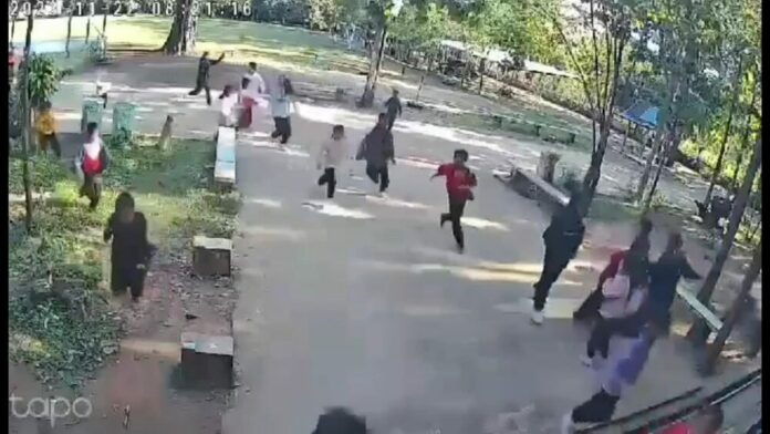 At 8:30 AM, on November 22nd, 2023, Khon San police officers received a report of a mentally ill man riding a motorcycle with a possible weapon into the Ban Nam Phu Hin Lad School in which 100 students attended in Khon San, Chaiyaphum.