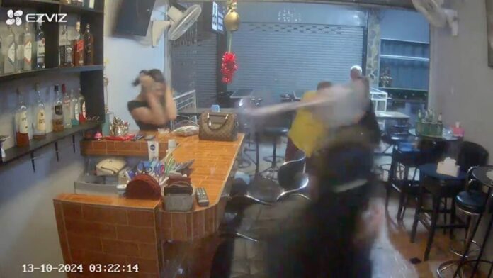 The suspect, identified as Max, 59, from the Netherlands, was seen on CCTV around 3:00 AM the night before reportedly throwing glasses, ashtrays, and two electric fans at the cashier and owner over a dispute involving 130 baht in change, reported the police.