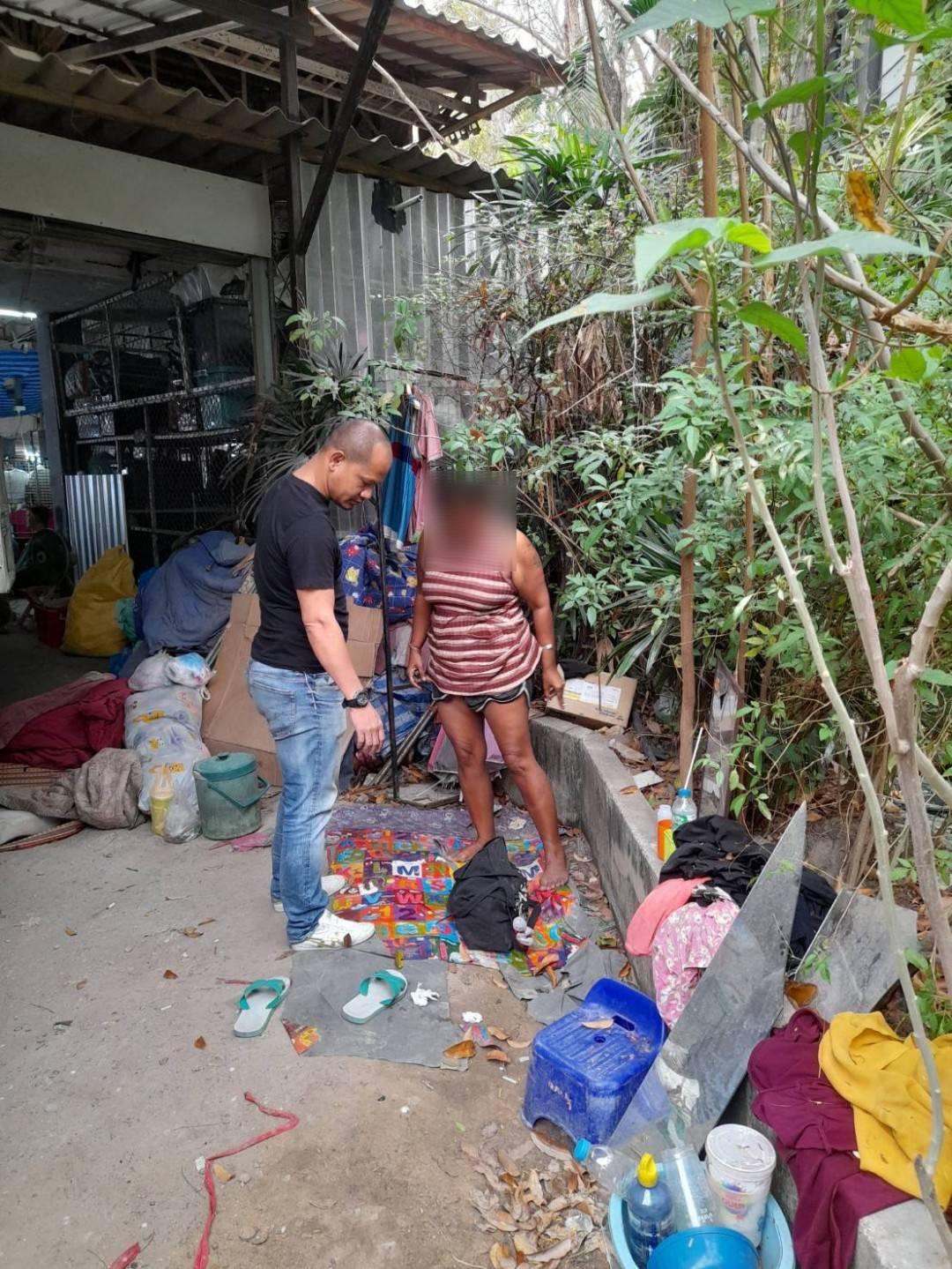 Police arrested a homeless woman after she was seen openly using drugs in a busy Pattaya market.