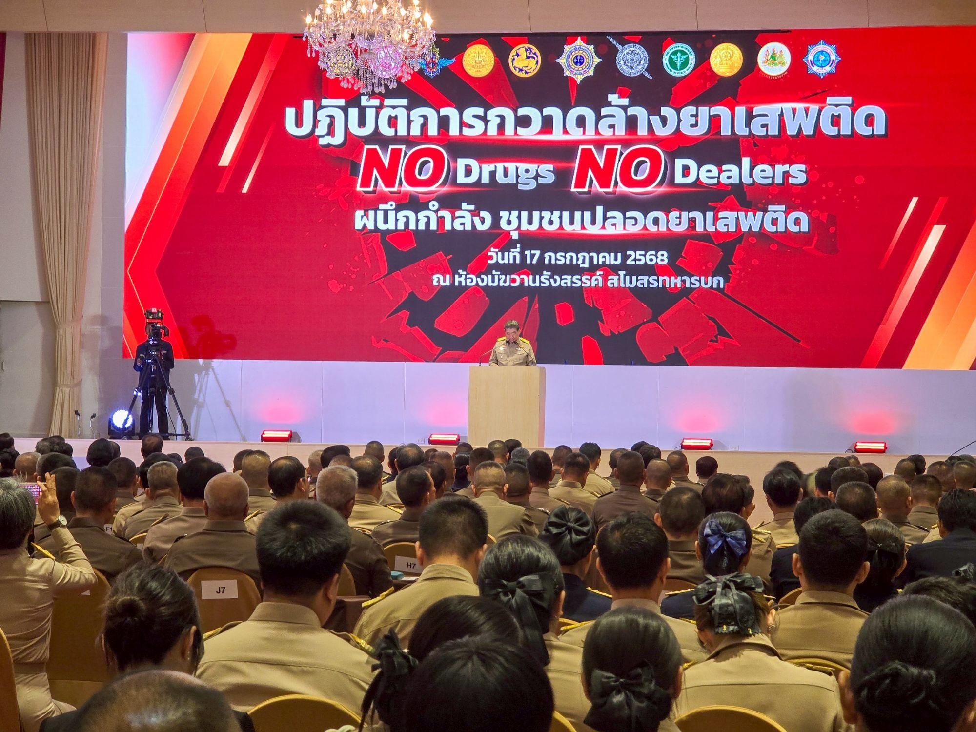 Bangkok, Thailand – On July 17th, 2025, at 1:00 PM, Chonburi Governor Mr. Thawatchai Srithong, accompanied by Deputy Provincial Police Commander Colonel Chatree Suksiri, attended the launch of a nationwide anti-drug operation under the theme “No Drugs No Dealers” at the Mukhawan Rangsan Room, Army Club, in Bangkok. The ceremony was presided over by Deputy Prime Minister and Acting Prime Minister Mr. Phumtham Wechayachai, who also serves as the Minister of Interior.