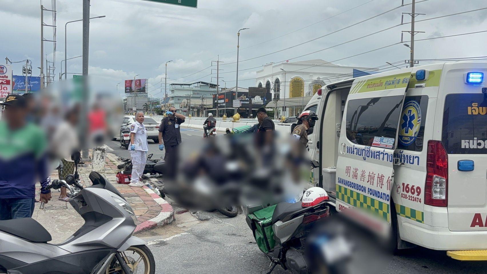 PATTAYA, Thailand – An accident occurred at 12:00 PM on October 5th, 2025, on Sukhumvit Road near Pattaya Soi 42, resulting in one fatality and two injuries. Police Lieutenant Sakayaphap Chaidech, Deputy Investigator from the Pattaya City Police Station, responded to reports of a collision between a sedan and motorcycles, coordinating with rescue volunteers from Sawang Boriboon Thammasathan Pattaya to attend the scene.