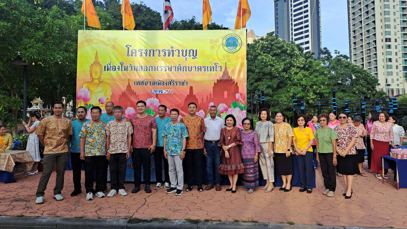 Led by Ms. Jintana Jeeracheewin, Senior District Permanent Secretary of Sriracha, Mr. Praphat Charoensantisuk, Mayor of Sriracha Municipality, and Ms. Korawan Temiyasorn, Deputy Mayor, the event drew a large crowd, including municipal executives, council members, local merchants, and representatives from both public and private sectors. Participants offered dry food, rice, and the traditional khao tom hang (sticky rice balls) to 65 Buddhist monks as part of the Tak Bat Devo ceremony, held the day after the end of Buddhist Lent, on the first day of the waning moon of the 11th lunar month.