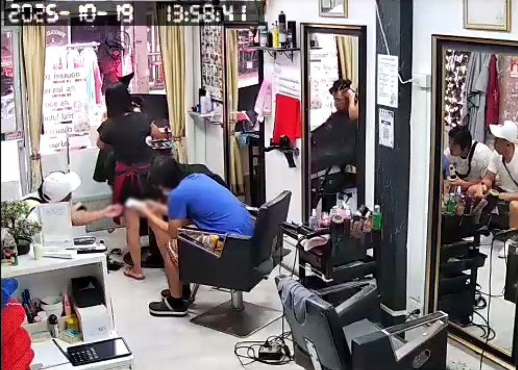 Kanokkarn Sriworakul, 34, the salon’s owner, was cutting the hair of one of the tourists around 1:58 p.m. when the other three, who appeared intoxicated and were drinking beer inside the salon, began laughing and making inappropriate gestures. CCTV footage revealed one of the men reaching out to lift the hem of Kanokkarn’s skirt, an act she described as deeply disrespectful and humiliating. The group also reportedly mocked another customer, a transgender woman, with derogatory remarks in Japanese about her gender.