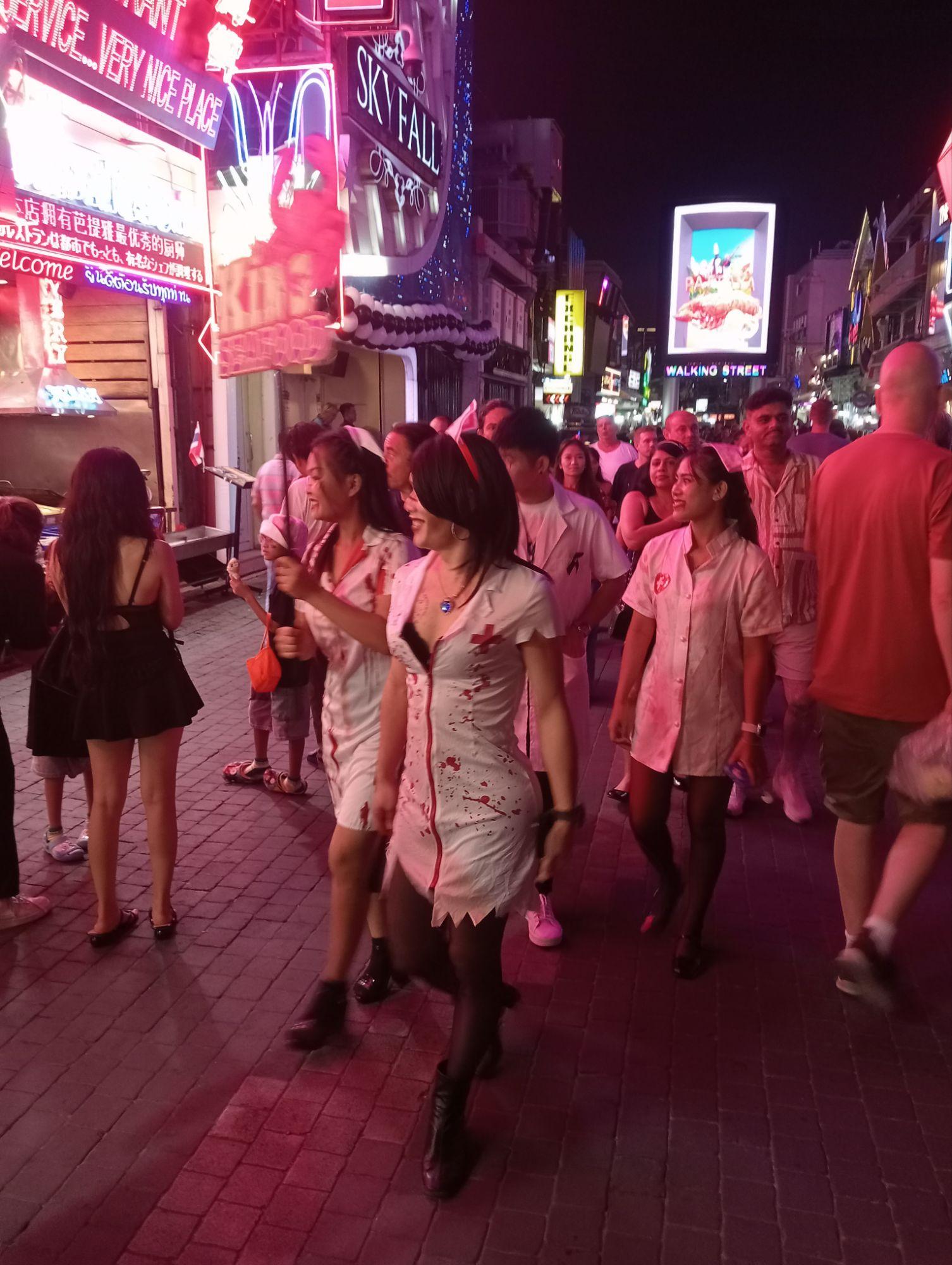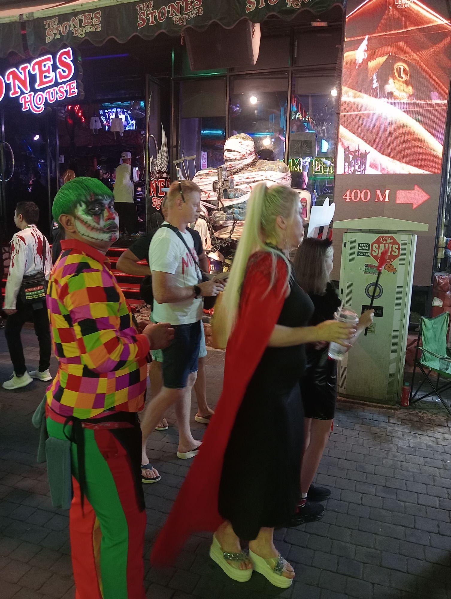 Pattaya, Thailand – October 31st, 2025: The neon-lit streets of Pattaya pulsed with Halloween energy on Thursday night, as bars, nightclubs, and tourist hotspots embraced spooky decorations and costumed revelry, even under intermittent rain showers. Despite the lively celebrations, a somber undercurrent of respect prevailed, with operators donning black-and-white attire and displaying condolence banners for Her Royal Majesty Queen Sirikit, the Queen Mother, following her passing.