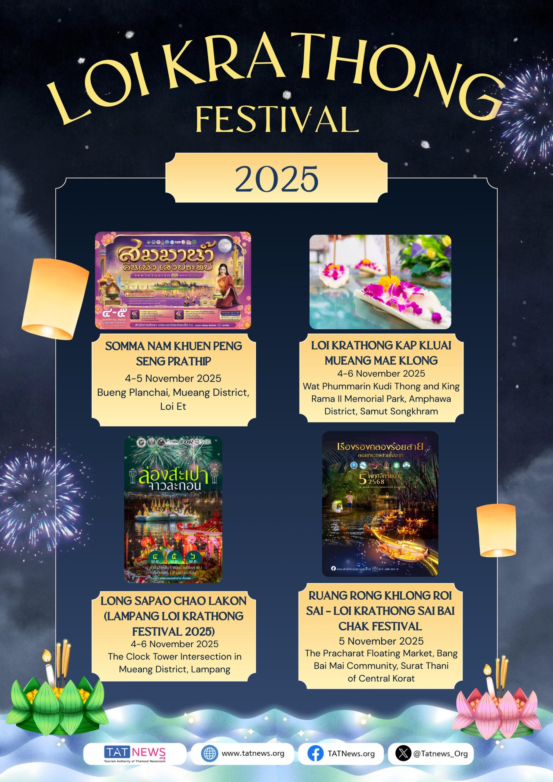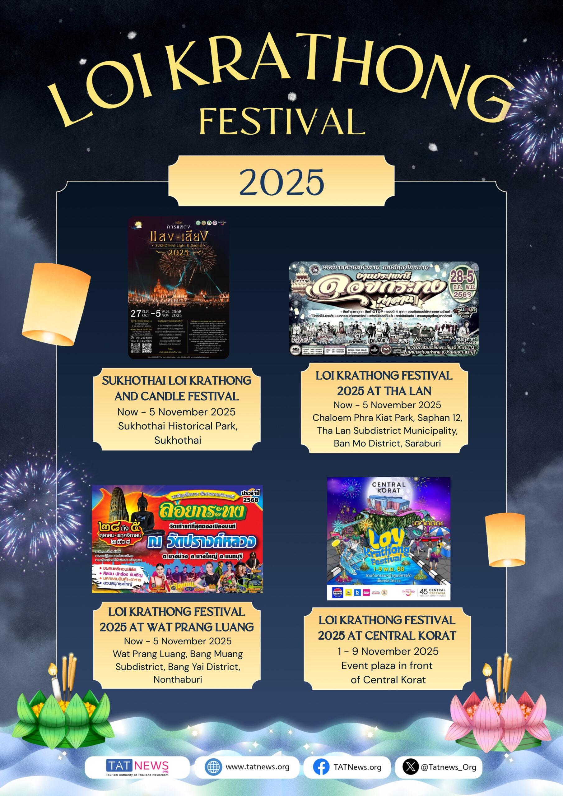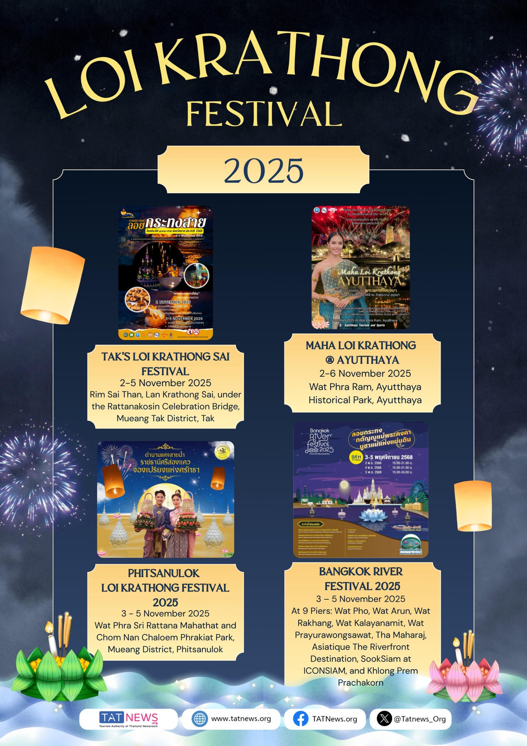 From Sukhothai and Ayutthaya to Bangkok and the South, the Loi Krathong Festival 2025 invites visitors to experience Thailand’s timeless celebration of light, culture, and community.