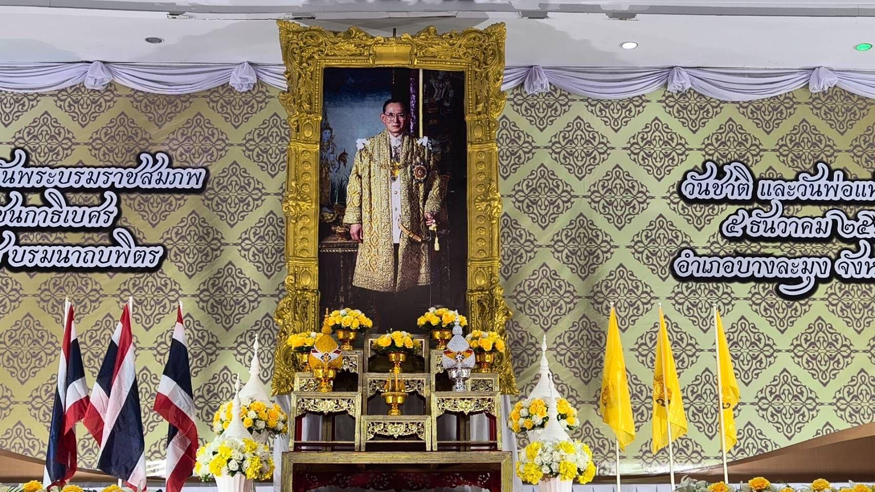 Residents of Banglamung District gathered in large numbers this morning to take part in a solemn alms-giving ceremony held in commemoration of the birthday anniversary of His Royal Majesty King Bhumibol Adulyadej the Great (King Rama IX), which also marks Thailand’s National Day and National Father’s Day.
